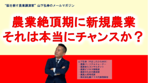 さて、今週のテーマは「農業絶頂期に始める新規農業者。それは本当にチャンスか?」