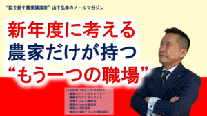 農業コンサルタントの山下弘幸(農テラス)は、全国各地で**「稼げる農業」「農業ビジネス思考」**をテーマにした講演・研修を承っております。