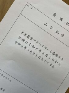 今年も、未来農業アドバイザーに任命されました。